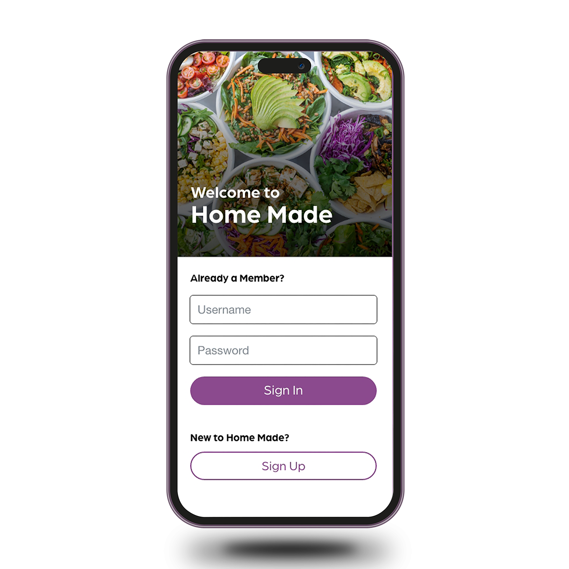 Feel at home right from the start. The Home Made sign in page uses consistent styles so the user can navigate based on familiarity and gets to enjoy the personality of the app.