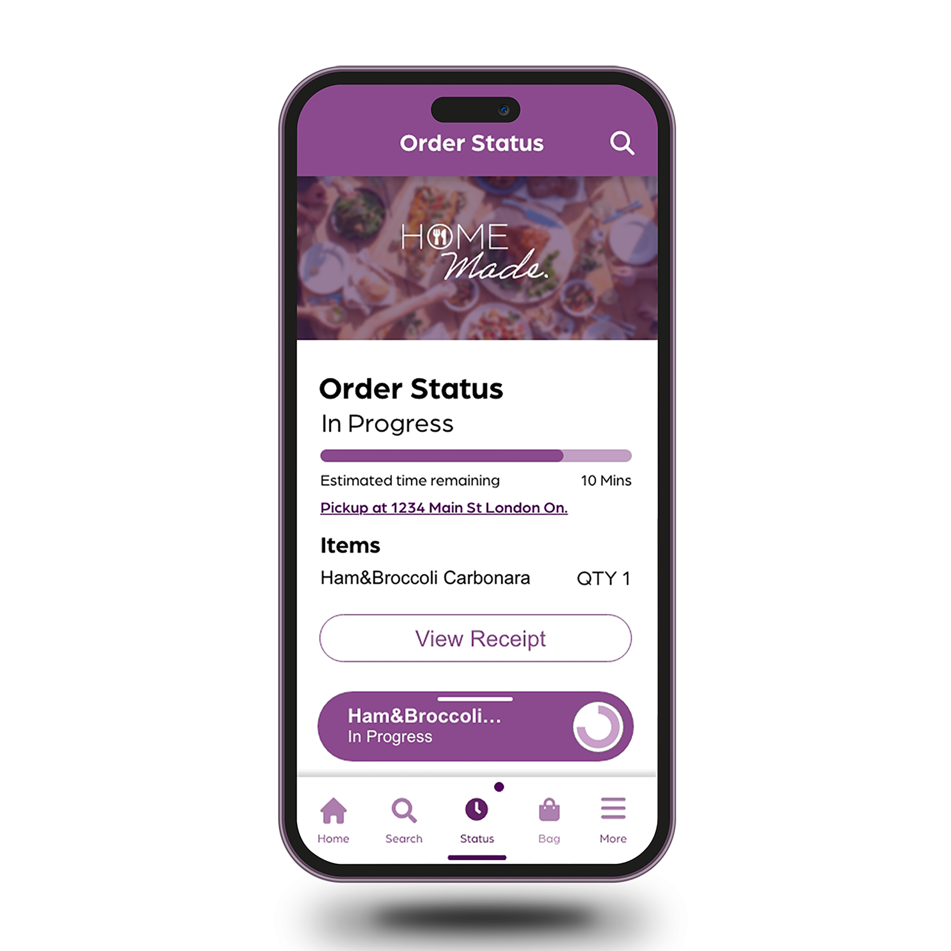 Arguable the most vital page in the app, the order status screen is easy to consume, and always accessible to the user via the collapsable widget pinned to the screens bottom.
