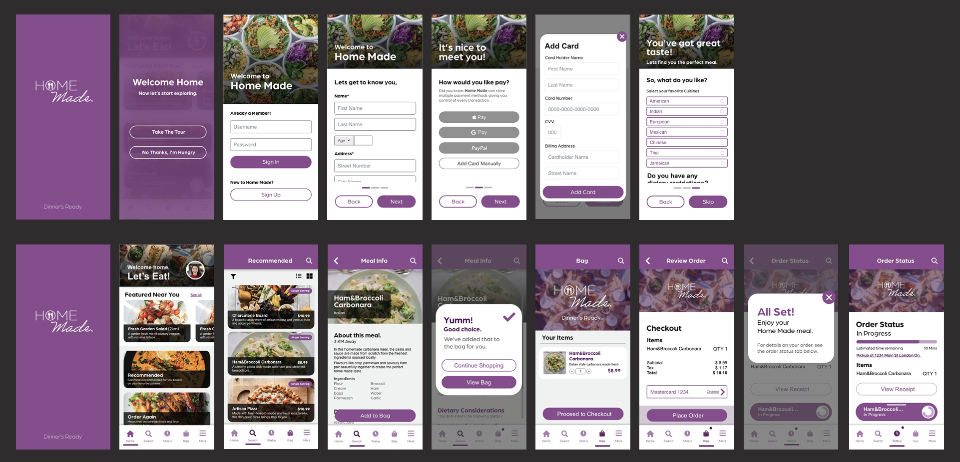 Home Made is a app that allows its audience to order home made meals from local cooks for pickup. The use cases included here show the process of signing up for Home Made and the process of finding a meal and ordering it.