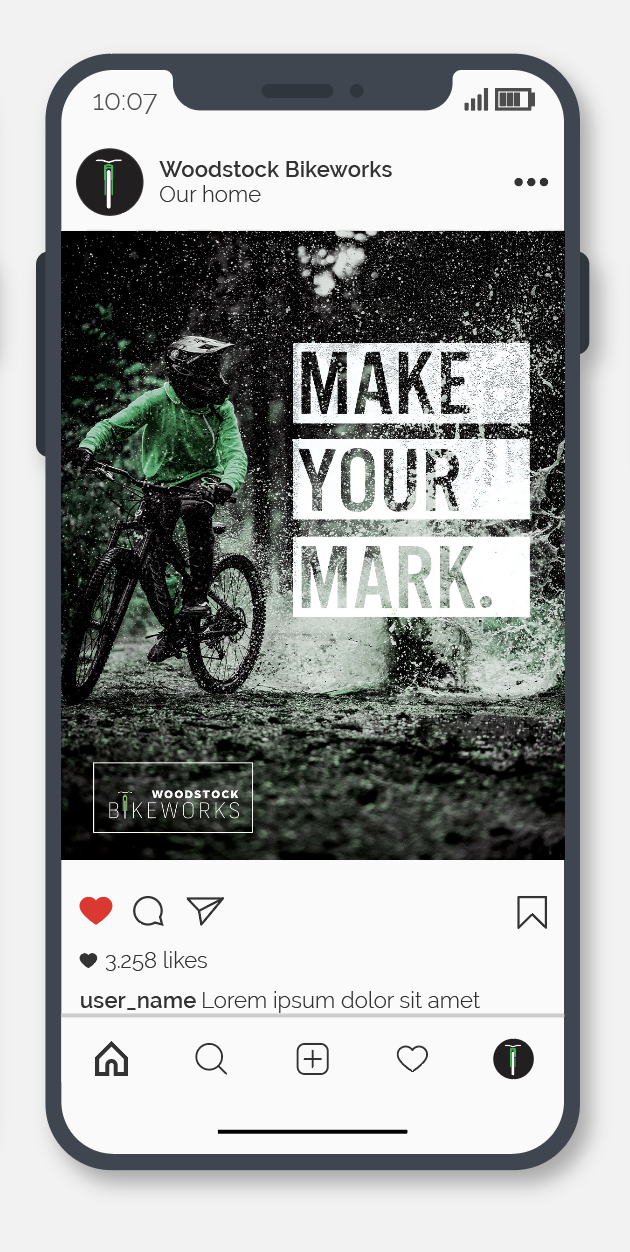 This is a mock campaign designed to show the client the potential for the logo components. The instagram mockup shows the favicon logo alternative as a profile photo demonstrating just how clearly defined this brand is.